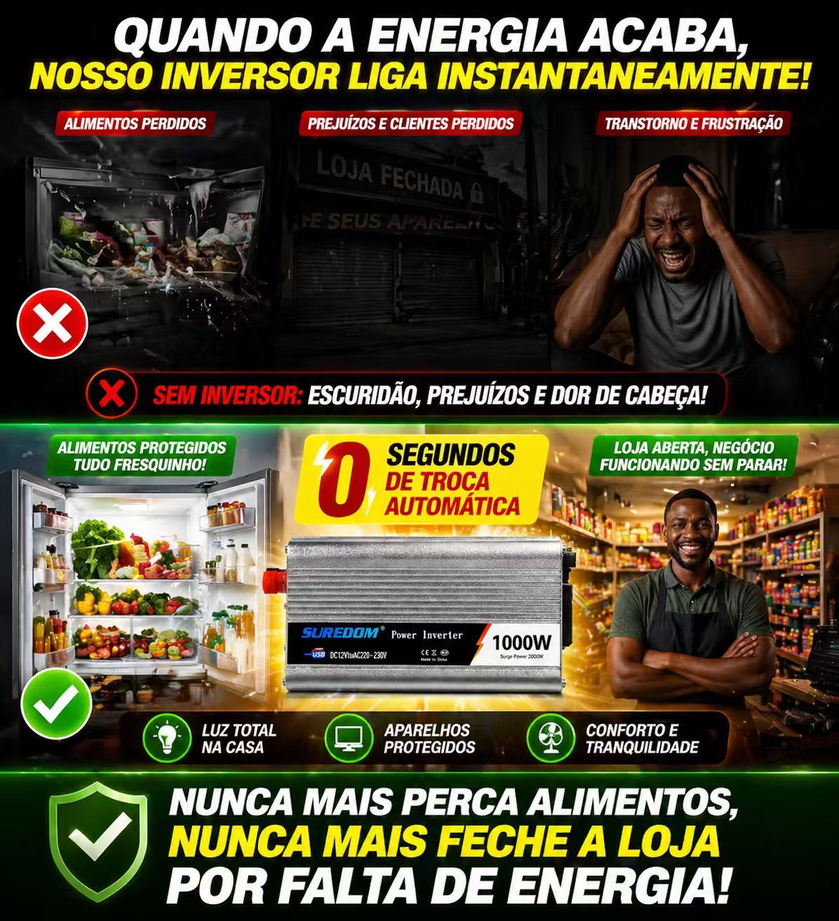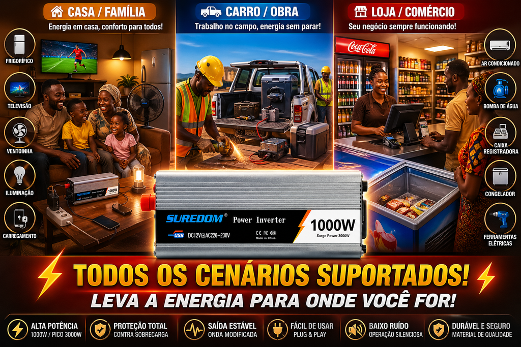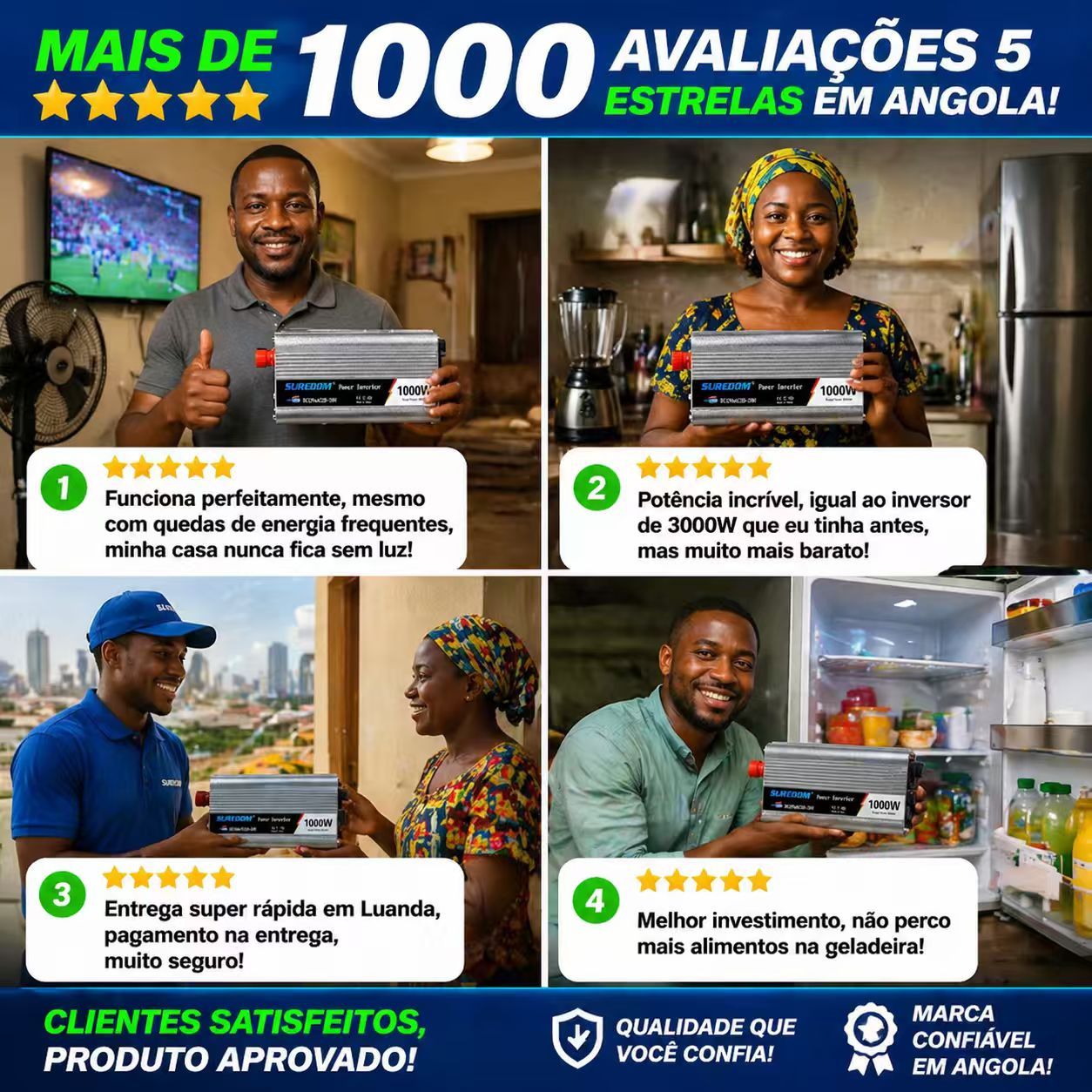 INVERSOR 1000W = MAIS FORTE QUE 3000W! FIM DAS QUEDAS DE LUZ EM LUANDA!
